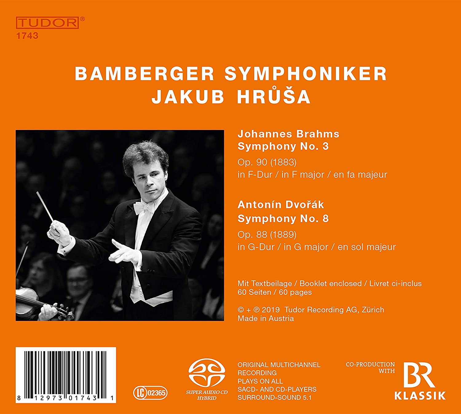 Přímo z Curychu za mnou dorazila nahrávka labelu TUDOR, který s Jakubem Hrůšou a Bamberskými symfoniky realizuje projekt čtyř dvojalb, na kterých se vedle sebe vždy skví v páru symfonie Antonína Dvořáka a Johannesa Brahmse. O prvním kousku s Dvořákovou devátou a Brahmsovou čtvrtou jsem měl již možnost psát, nyní je tu má oblíbená osmička s takřka podobně oblíbenou Brahmsovou trojkou. Pro pořádek uveďme, že se opět nahrálo v sále Josepha Keilbertha, Dvořák v březnu 2018, Brahms v květnu téhož roku.